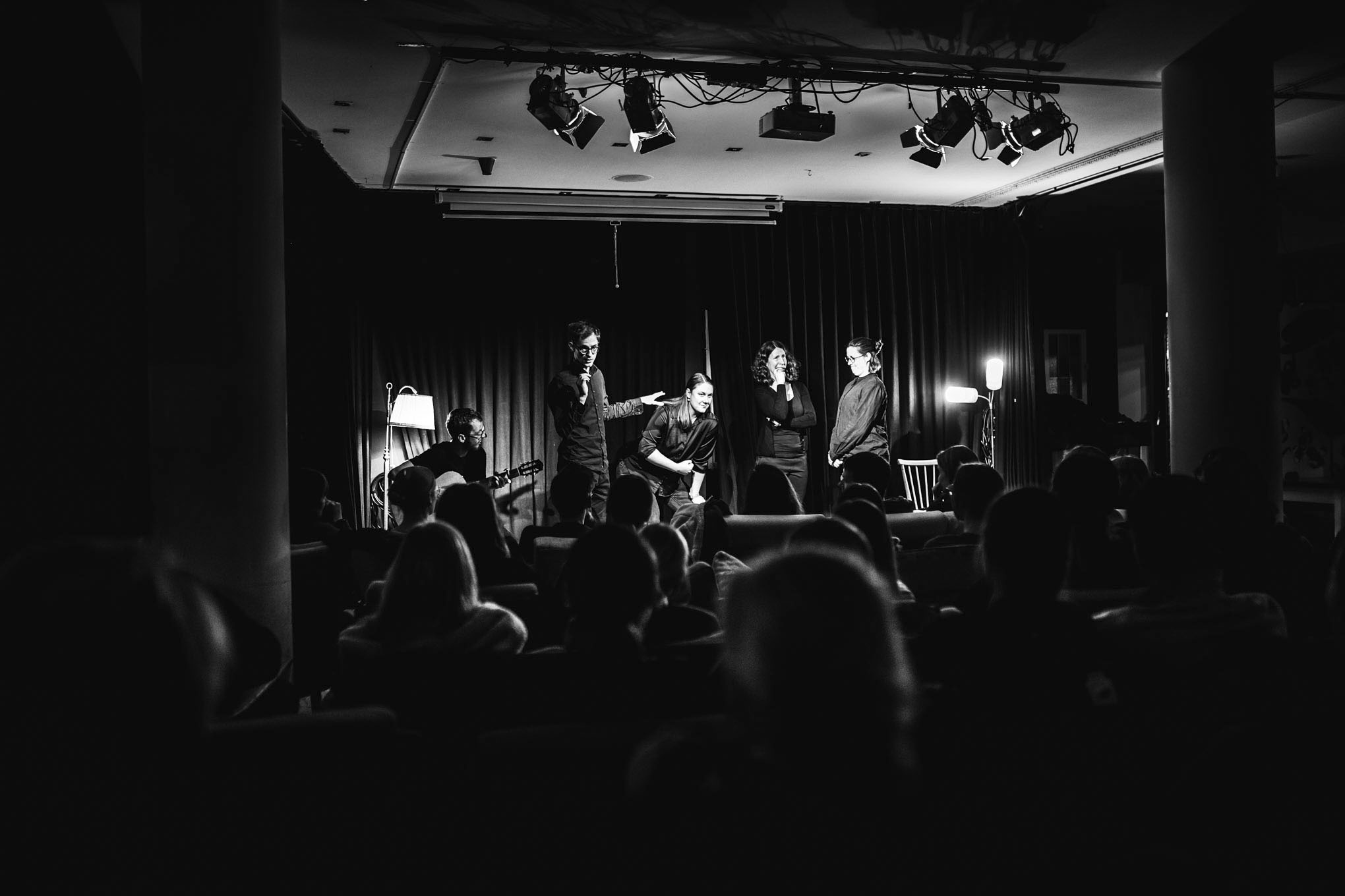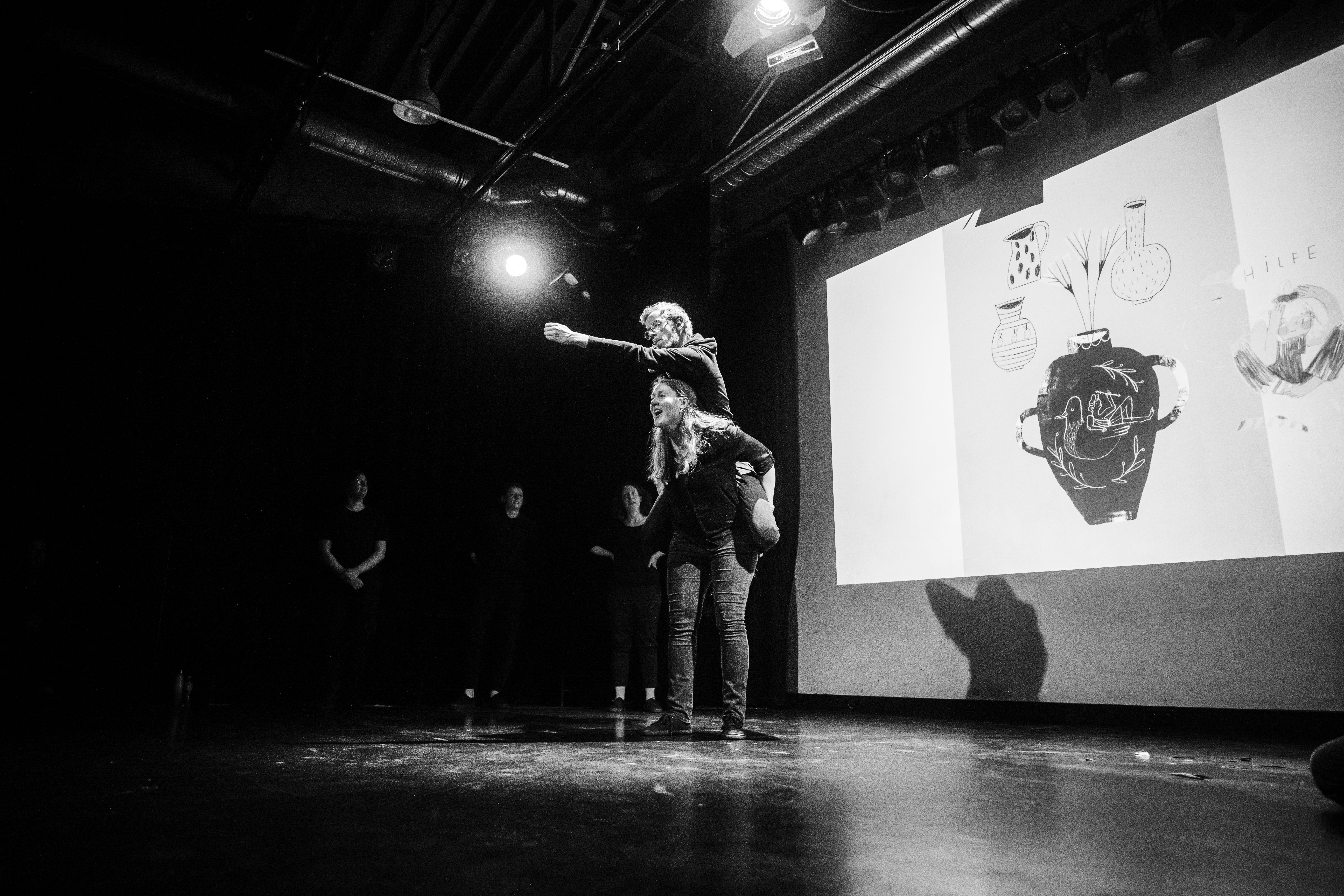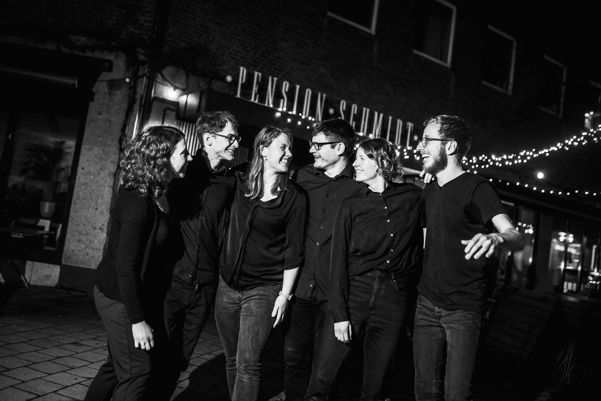 Wir spielen Improtheater spontan nach Euren Inspirationen: Wir erzählen Geschichten aus dem Nichts. 2013 haben wir uns zusammengefunden und sind seitdem als unabhängiges Ensemble unterwegs. Wir sind monatlich in der Pension Schmidt und der F24, regelmäßig im Kreativ-Haus und der Studiobühne zu sehen. Wir sind auf diversen Festivals national und international unterwegs.